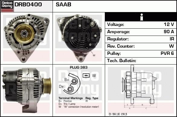Dodatkowe informacje o produkcie Alternator, Light duty Europe Reman DRB0400 DELCO REMY AUTOMOTIVE EUROPE