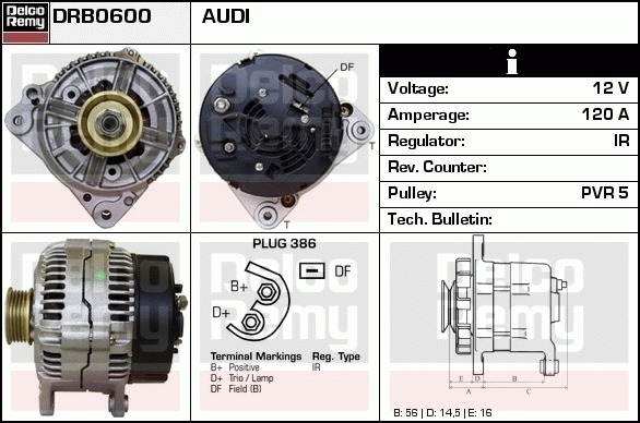 Dodatkowe informacje o produkcie Alternator, Light duty Europe Reman DRB0600 DELCO REMY AUTOMOTIVE EUROPE