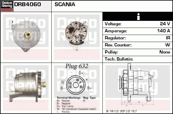 Dodatkowe informacje o produkcie Alternator, Heavy duty Reman DRB4060 DELCO REMY AUTOMOTIVE EUROPE