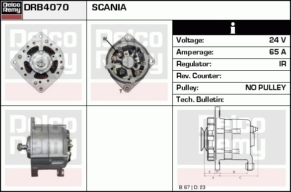 Dodatkowe informacje o produkcie Alternator, Heavy duty Reman DRB4070 DELCO REMY AUTOMOTIVE EUROPE