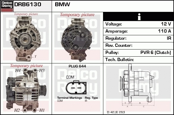 Dodatkowe informacje o produkcie Alternator, Light duty Europe Reman DRB6130 DELCO REMY AUTOMOTIVE EUROPE