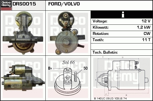 Dodatkowe informacje o produkcie Rozrusznik, Light duty Europe Reman DRS0015 DELCO REMY AUTOMOTIVE EUROPE