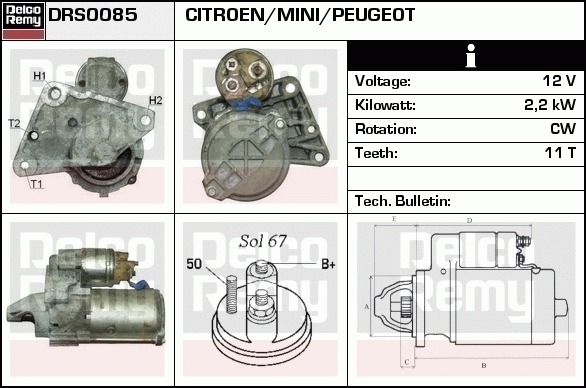 Dodatkowe informacje o produkcie Rozrusznik, Light duty Europe Reman DRS0085 DELCO REMY AUTOMOTIVE EUROPE