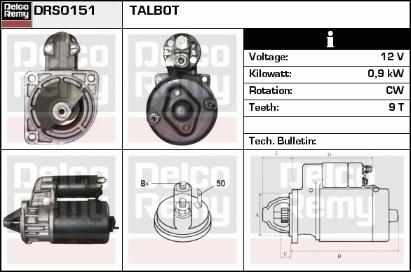 Dodatkowe informacje o produkcie Rozrusznik, Light duty Europe Reman DRS0151 DELCO REMY AUTOMOTIVE EUROPE