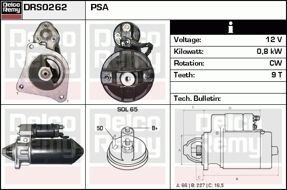 Dodatkowe informacje o produkcie Rozrusznik, Light duty Europe Reman DRS0262 DELCO REMY AUTOMOTIVE EUROPE