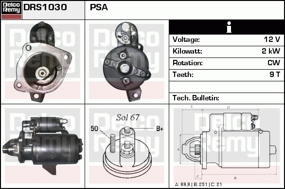 Dodatkowe informacje o produkcie Rozrusznik, Light duty Europe Reman DRS1030 DELCO REMY AUTOMOTIVE EUROPE