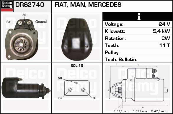 Dodatkowe informacje o produkcie Rozrusznik, Heavy duty Reman DRS2740 DELCO REMY AUTOMOTIVE EUROPE