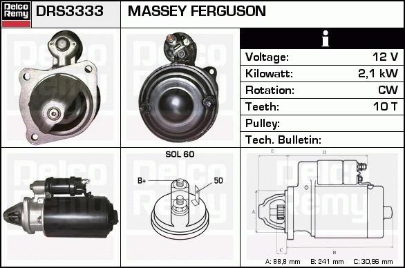 Dodatkowe informacje o produkcie Rozrusznik, Heavy duty Reman DRS3333 DELCO REMY AUTOMOTIVE EUROPE