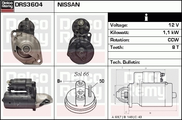 Dodatkowe informacje o produkcie Rozrusznik, Light duty Japan Reman DRS3604 DELCO REMY AUTOMOTIVE EUROPE
