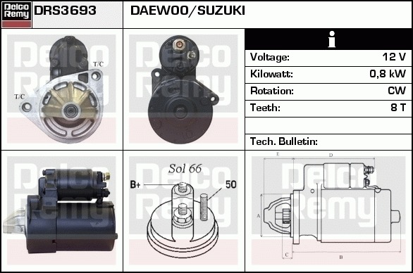 Dodatkowe informacje o produkcie Rozrusznik, Light duty Japan Reman DRS3693 DELCO REMY AUTOMOTIVE EUROPE