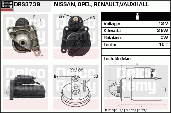Dodatkowe informacje o produkcie Rozrusznik, Light duty Europe Reman DRS3739 DELCO REMY AUTOMOTIVE EUROPE