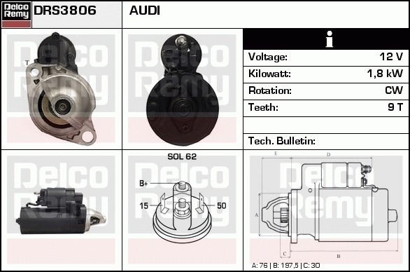 Dodatkowe informacje o produkcie Rozrusznik, Light duty Europe Reman DRS3806 DELCO REMY AUTOMOTIVE EUROPE