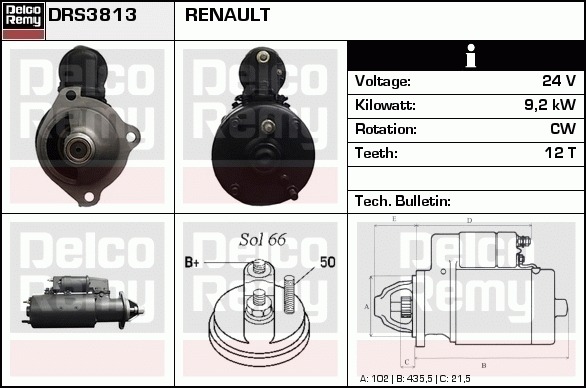 Dodatkowe informacje o produkcie Rozrusznik, Heavy duty Reman DRS3813 DELCO REMY AUTOMOTIVE EUROPE