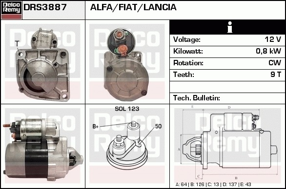 Dodatkowe informacje o produkcie Rozrusznik, Light duty Europe Reman DRS3887 DELCO REMY AUTOMOTIVE EUROPE