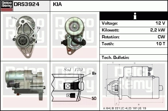 Dodatkowe informacje o produkcie Rozrusznik, Light duty Gold New DRS3924N DELCO REMY AUTOMOTIVE EUROPE
