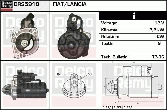 Dodatkowe informacje o produkcie Rozrusznik, Light duty Europe Reman DRS5910 DELCO REMY AUTOMOTIVE EUROPE