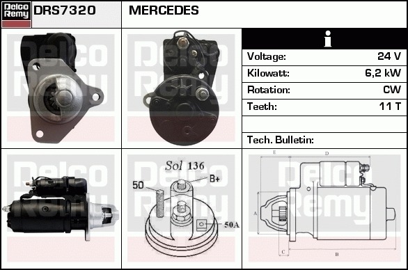 Dodatkowe informacje o produkcie Rozrusznik, Heavy duty Reman DRS7320 DELCO REMY AUTOMOTIVE EUROPE