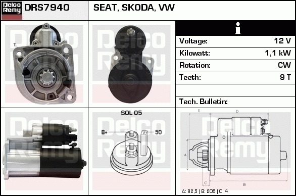 Dodatkowe informacje o produkcie Rozrusznik, Light duty Europe Reman DRS7940 DELCO REMY AUTOMOTIVE EUROPE