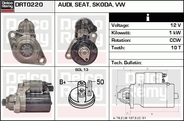 Dodatkowe informacje o produkcie Rozrusznik, Light duty Europe Reman DRT0220 DELCO REMY AUTOMOTIVE EUROPE