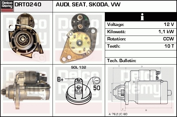 Dodatkowe informacje o produkcie Rozrusznik, Light duty Europe Reman DRT0240 DELCO REMY AUTOMOTIVE EUROPE