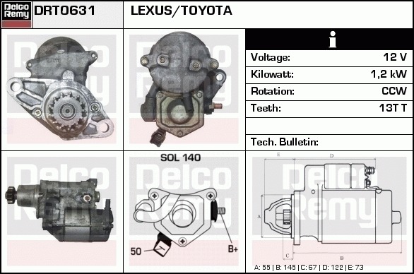 Dodatkowe informacje o produkcie Rozrusznik, Light duty Japan Reman DRT0631 DELCO REMY AUTOMOTIVE EUROPE
