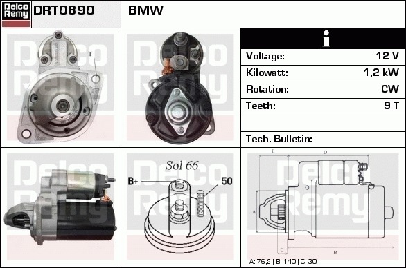 Dodatkowe informacje o produkcie Rozrusznik, Light duty Europe Reman DRT0890 DELCO REMY AUTOMOTIVE EUROPE