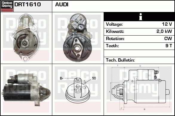 Dodatkowe informacje o produkcie Rozrusznik, Light duty Europe Reman DRT1610 DELCO REMY AUTOMOTIVE EUROPE
