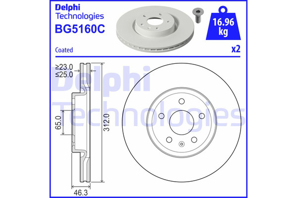 Dodatkowe informacje o produkcie Kpl. tarcz hamulcowych (2 szt.) przód L/P BG5160C DELPHI