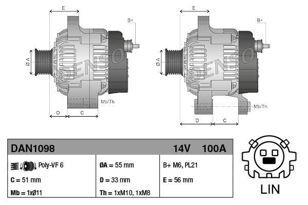 Dodatkowe informacje o produkcie Alternator DAN1098 DENSO
