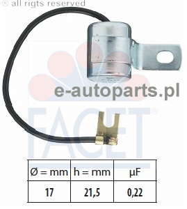 Dodatkowe informacje o produkcie Kondensator, układ zapłonowy 0.0531 FACET EPS