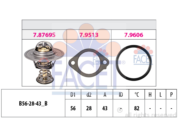 części samochodowe » układ chłodzenia » termostat i uszczelka » termostat » 7.8769 facet eps