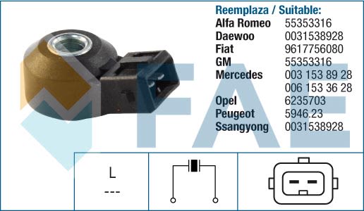 Zastosowanie Czujnik spalania stukowego 60161 FAE w samochodach:
