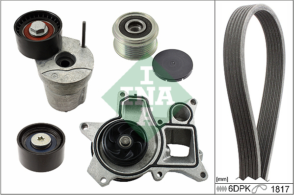 Dodatkowe informacje o produkcie Pompa wodna + zestaw paska klinowego wielorowkowego 529 0048 30 INA