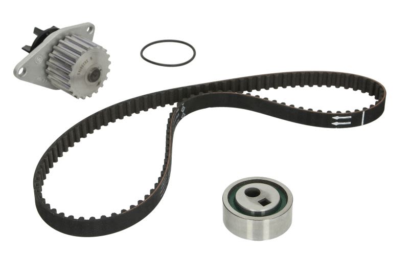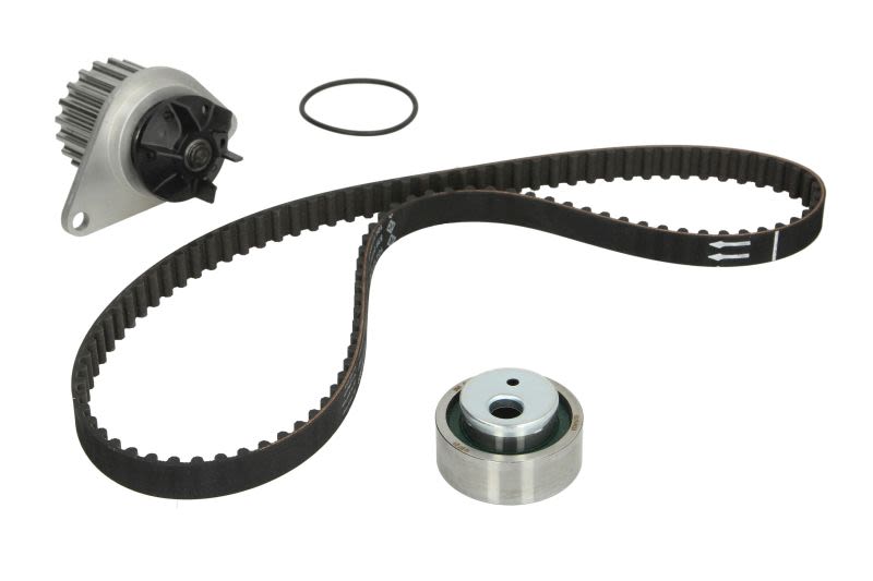 Zestaw do obsługi napędu rozrządu z dołączoną pompą cieczy chłodzącej, przeznaczony do wymiany kompletnej w jednym cyklu serwisowym. Kompletacja z pompą pozwala ograniczyć ryzyko nieszczelności i ponownej ingerencji w rozrząd po krótkim przebiegu, pod warunkiem montażu zgodnego z procedurą producenta pojazdu.