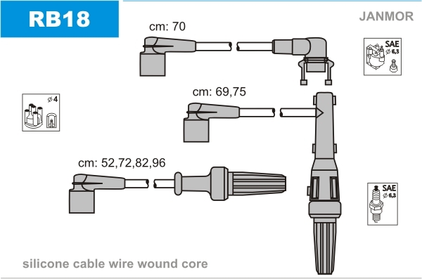 Dodatkowe informacje o produkcie Zestaw przewodów zapłonowych RB18 JANMOR