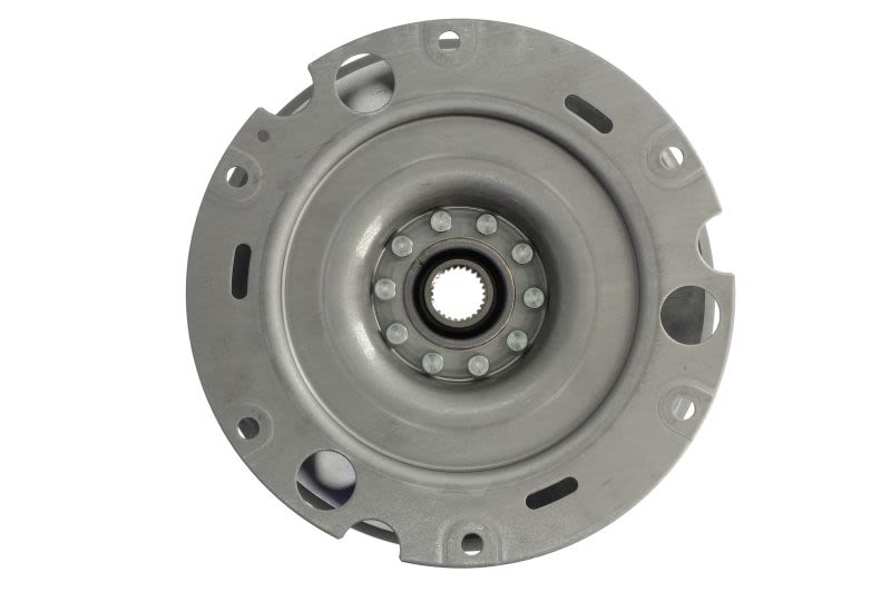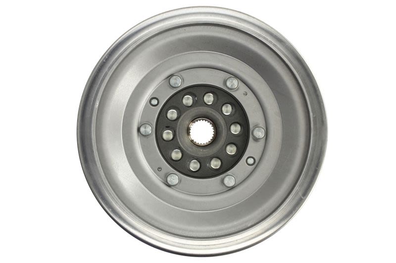 Koło zamachowe dwumasowe przeznaczone do układów napędowych z przekładnią dwusprzęgłową. Element odpowiada za tłumienie drgań skrętnych generowanych przez silnik oraz stabilizację pracy sprzęgła i skrzyni biegów w różnych zakresach obciążenia. Stosowanie właściwego typu ma wpływ na kulturę pracy napędu oraz ograniczenie hałasu i wibracji przenoszonych na nadwozie.