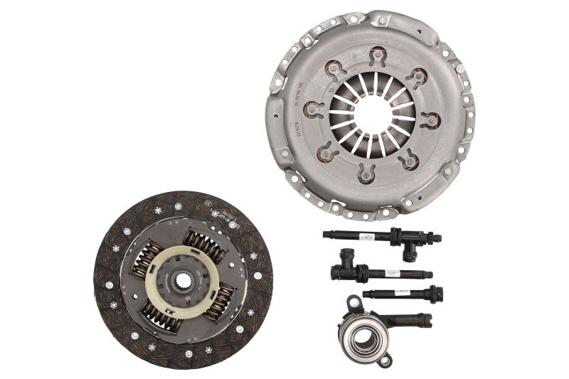 Tradycyjne sprzęgło w aucie nie różni się od innych konstrukcji tego typu stosowanych w różnych maszynach. Składa się z dwóch elementów, które są na stałe połączone z wałami napędzanym i napędowym. Pomiędzy tymi elementami znajduje się specjalny łącznik, który może mieć zróżnicowaną postać. Sprzęgła cierne są zbudowane z kilku podstawowych elementów. Są to: