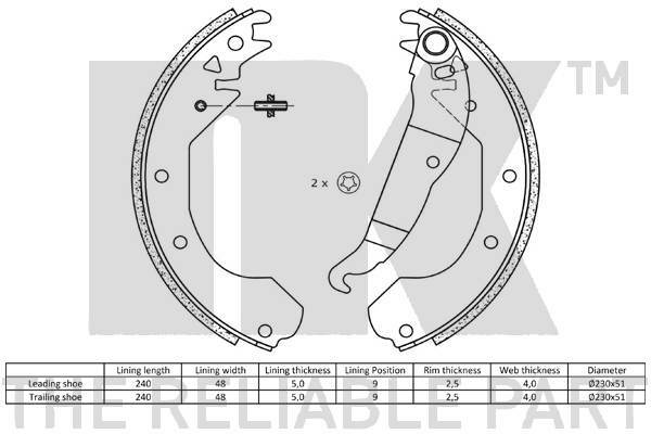 Dodatkowe informacje o produkcie Zestaw szczęk hamulcowych 2736410 NK