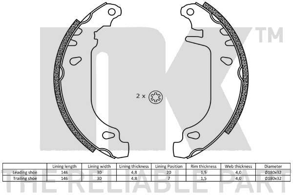 Dodatkowe informacje o produkcie Zestaw szczęk hamulcowych 2799545 NK