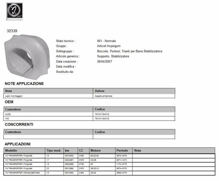 Dodatkowe informacje o produkcie Guma stabilizatora 32339 ORIGINAL IMPERIUM