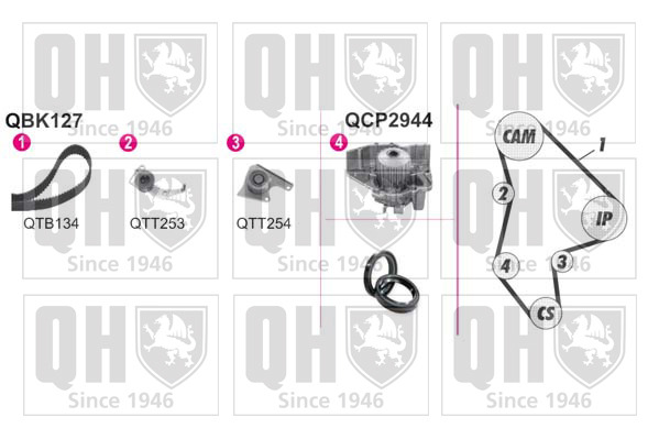Dodatkowe informacje o produkcie Pompa wodna + zestaw paska rozrządu QBPK1272 QUINTON