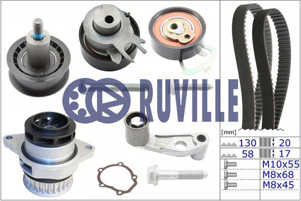 Dodatkowe informacje o produkcie Pompa wodna + zestaw paska rozrządu 55456702 RUVILLE/FAG