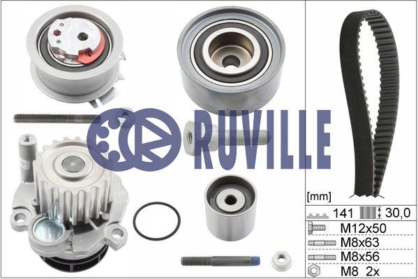 Dodatkowe informacje o produkcie Pompa wodna + zestaw paska rozrządu 55766711 RUVILLE/FAG