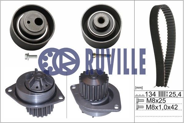 Dodatkowe informacje o produkcie Pompa wodna + zestaw paska rozrządu 55906701 RUVILLE/FAG