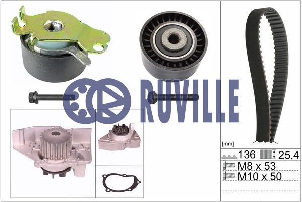 Dodatkowe informacje o produkcie Pompa wodna + zestaw paska rozrządu 55938701 RUVILLE/FAG