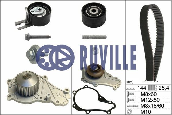 Dodatkowe informacje o produkcie Pompa wodna + zestaw paska rozrządu 55953702 RUVILLE/FAG