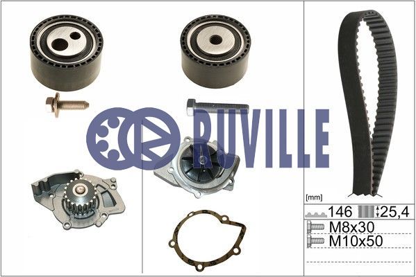 Dodatkowe informacje o produkcie Pompa wodna + zestaw paska rozrządu 55971701 RUVILLE/FAG