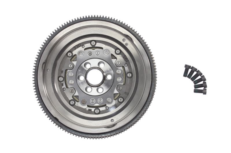 Koło dwumasowe określane też skrótem DKZ składa się z kilku elementów. Podstawę stanowi masa pierwotna, która jest bezpośrednio połączona z wałem korbowym silnika. Na jej powierzchni znajduje się zamocowany na stałe (techniką spawania lub na gorąco) wieniec koła zamachowego. Ten specyficzny element współpracuje z rozrusznikiem odpowiadając bezpośrednio za rozruch silnika. Masa pierwotna jest umieszczona pod pokrywą. Pomiędzy tymi elementami znajdują się dwie sprężyny skrętne z blokadami.