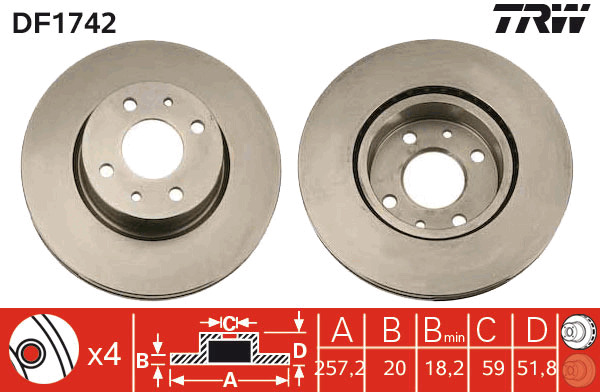 Dodatkowe informacje o produkcie Tarcza hamulcowa DF1742 TRW