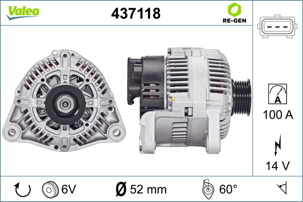 Dodatkowe informacje o produkcie Alternator, VALEO RE-GEN REMANUFACTURED 437118 VALEO